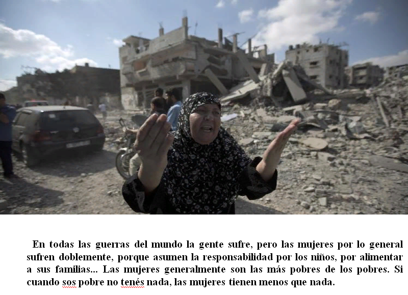 “En todas las guerras del mundo la gente sufre, pero las mujeres por lo general sufren doblemente, porque asumen la responsabilidad por los niños, por alimentar a sus familias… Las mujeres generalmente son las más pobres de los pobres. Si cuando sos pobre no tenés nada, las mujeres tienen menos que nada.”