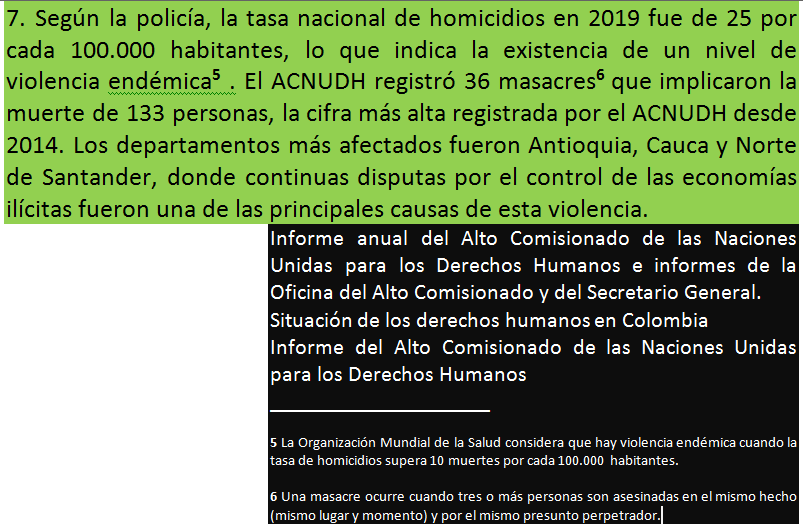 Colombia: Situación de los derechos humanos en Colombia Informe del Alto Comisionado de las Naciones Unidas para los Derechos Humanos
