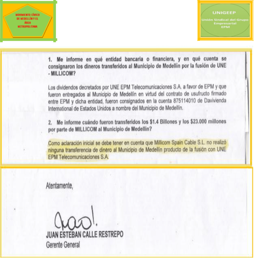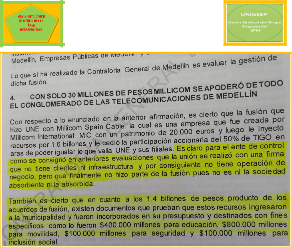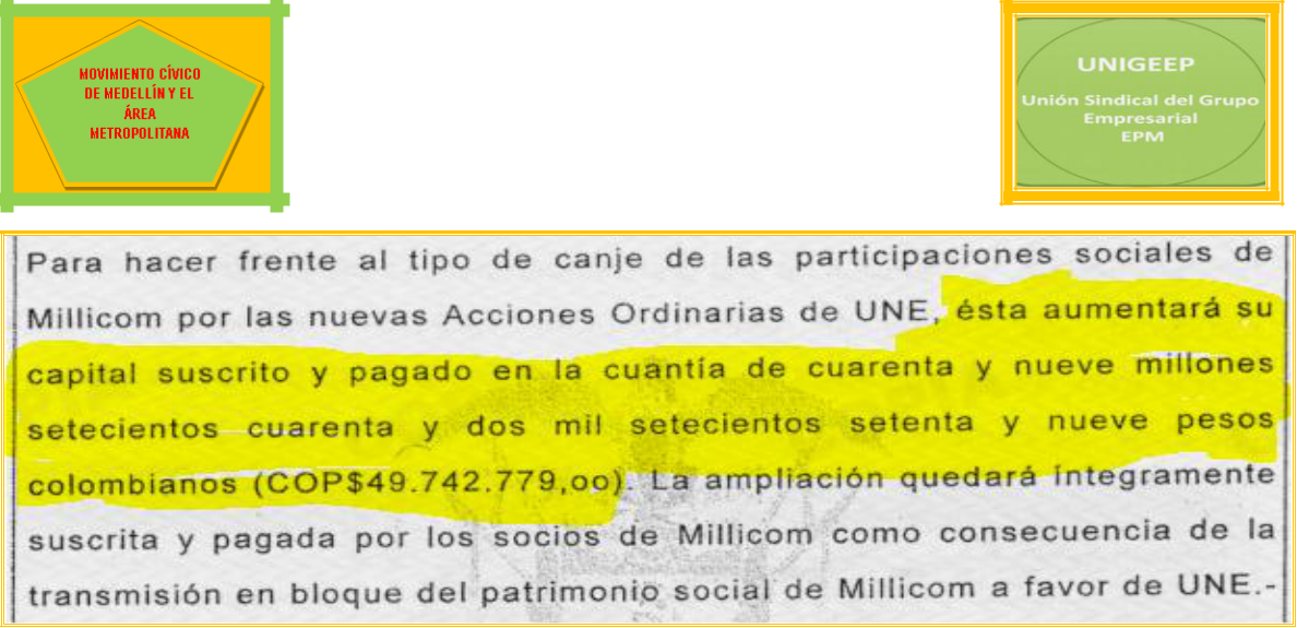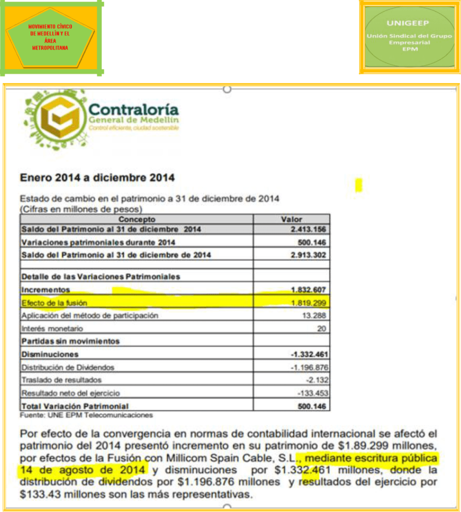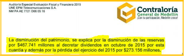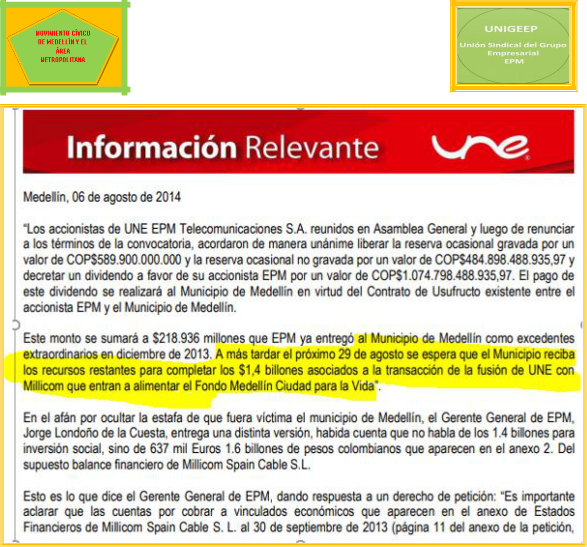 Queda claro que los 1.4 billones de pesos los sacaron de las reservas de UNE EPM Telecomunicaciones S.A., antes de la supuesta fusión. El documento completo lo aportamos como prueba.