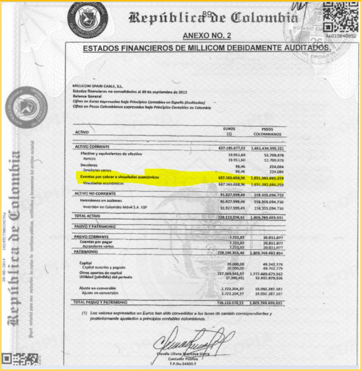 La respuesta es clara, Millicom no aportó dinero, sin embargo, en el supuesto balance aparecen aportando dinero.