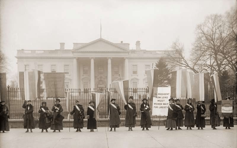 Manifestación del Partido Nacional de la Mujer frente a la Casa Blanca en 1918.