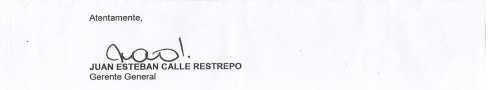 Mientras Marc Willy Eichmann Perret, firmaba la escritura en Medellín el 14 de agosto de 2014, ya depuesto de la Presidencia de UNE EPM TELECOMUNICACIONES S.A., Juan Esteban Calle Restrepo, ese mismo día 14 de agosto de 2014, se dirigía a Esteban Cristian Iriarte, como representante legal de la compañía.